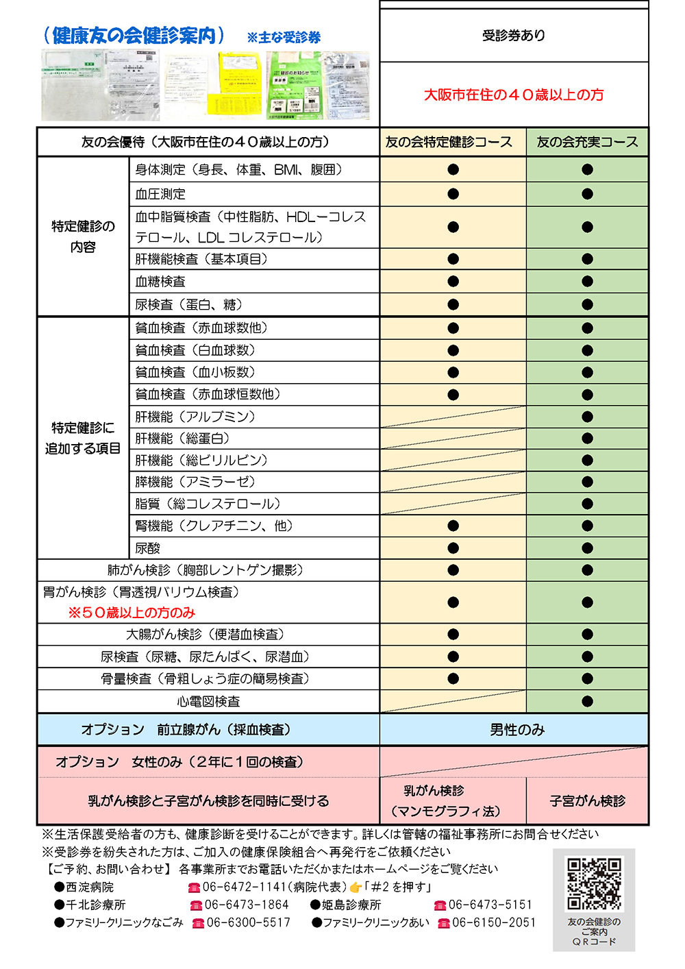 健診内容や予約状況など、詳細は、下記の一覧表でお気軽にお問い合わせください。