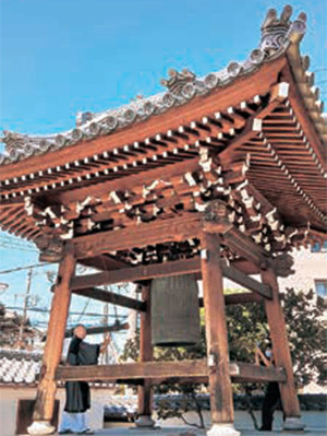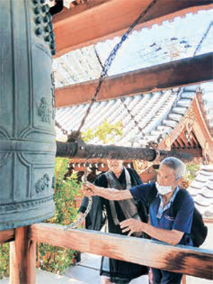 8月6日(水)、広島への原爆投下から80年のこの日、西淀川区内3つの寺で「平和の鐘つき」が行われました。